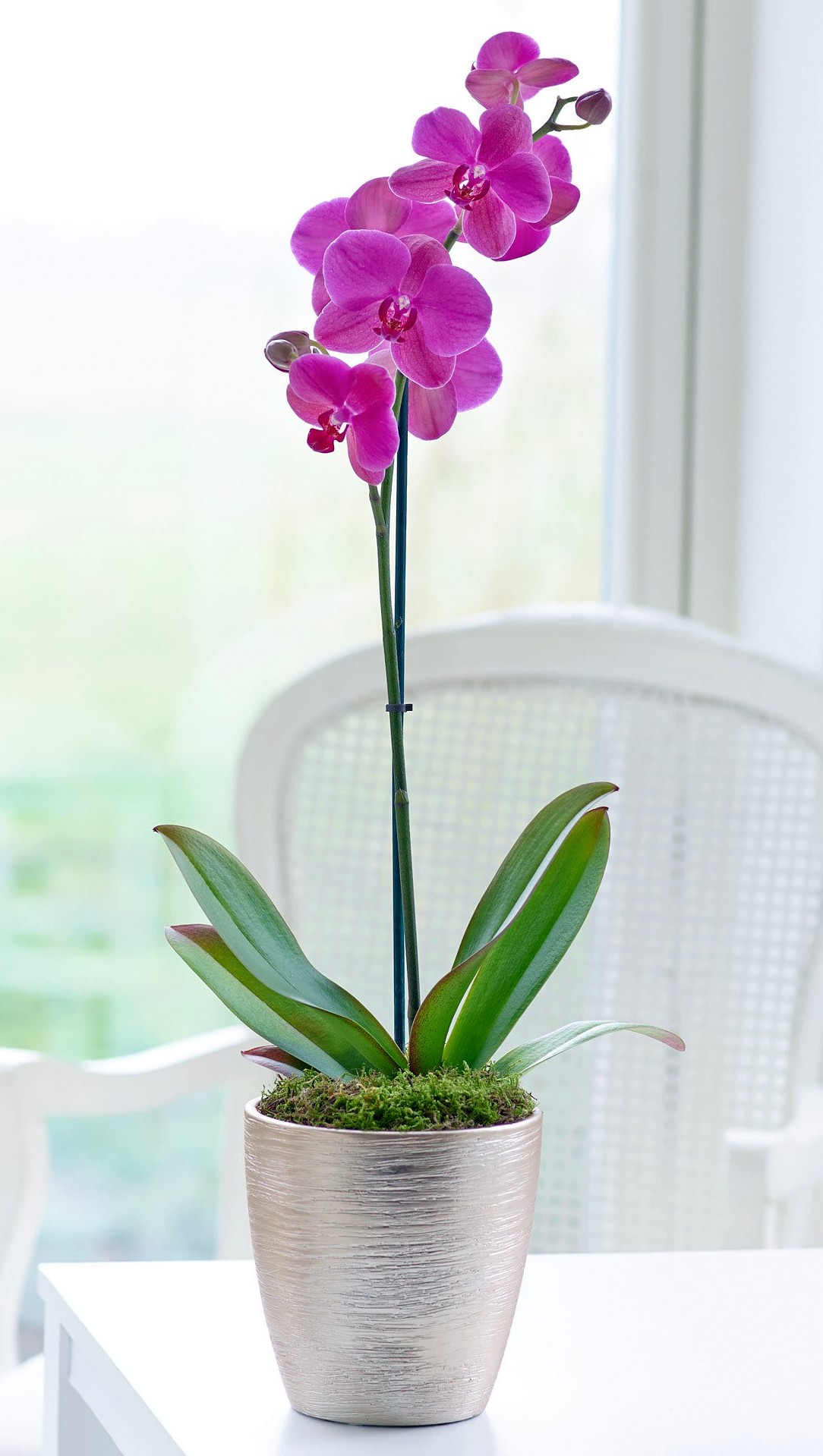 La orquídea es una de nuestras plantas estrella, dada su gran belleza y apuesta segura para un coqueto regalo. Necesita una elevada humedad ambiental, por lo que es conveniente realizar pulverizaciones. Hay que regarla periódicamente con agua no calcárea, una vez a la semana seria sufuciente. Podeis poner una platito debajo y cuando la panta haya tirado todo el exceso de agua retirarlo. No regar por el centro, ya que la falta de aireación puede hacer que se pudra. También puede regarse por inmersión. Una señal de que la planta está bien hidratada es cuando tiene las raíces verdes, en su defecto se volveran de color gris. El sustrato debe secarse antes de volver a regar, sin embargo la planta debe estar siempre húmeda. Requiere mucha luminosidad , pero sin exposición directa a la luz solar.